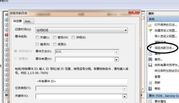 4、点击右侧筛选当前日志,如下图所示。