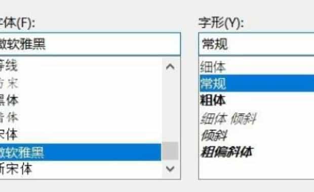 3.在中文字体中按照个人喜欢选择相应的字体,比如“微软雅黑”。点击相应字体选项,还可以对字体属性进行进一步的设置,如下图所示。