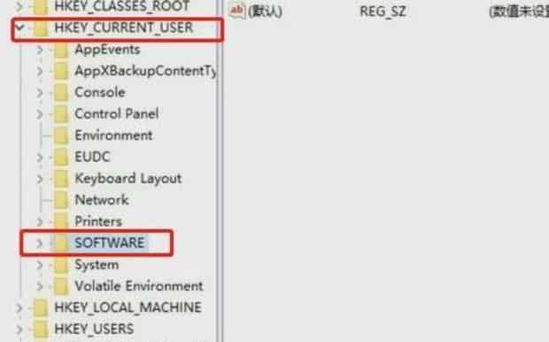 下一步在弹出来的注册表里面按照顺序依次找到 “ HKEY_CURRENT_USER”;“ SOFTWARE”。