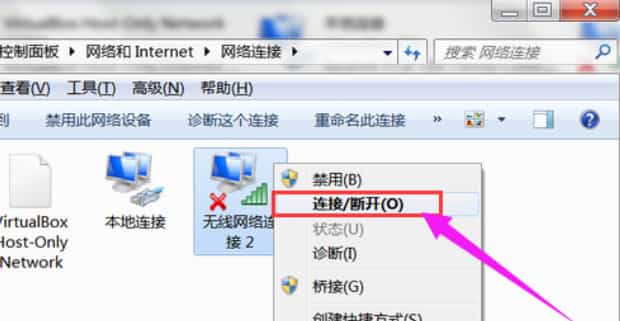 6.进入界面后,右键单击新安装的无线设备,然后选择“连接/断开连接”选项。