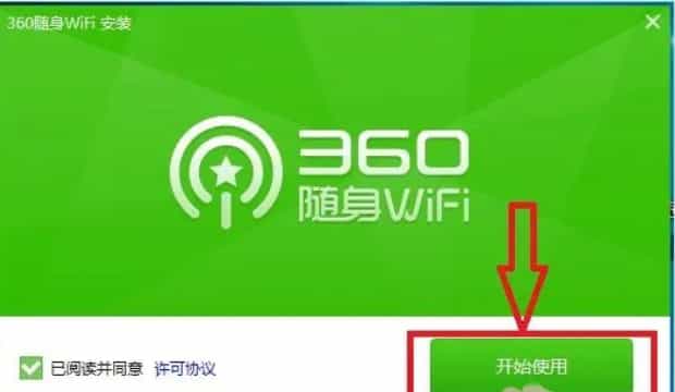 8、随后会弹出360随身wifi的安装界面,根据提示安装即可。单击安装界面中的“开始使用”按钮。