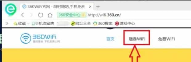 4、如图为360wifi官网首页,左上角处单击“随身wifi”按钮,进入随身wifi的相关界面。