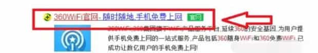 3、搜索结果中,选择360wifi官网进入。