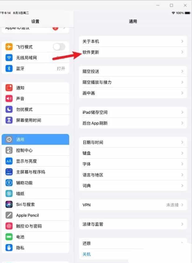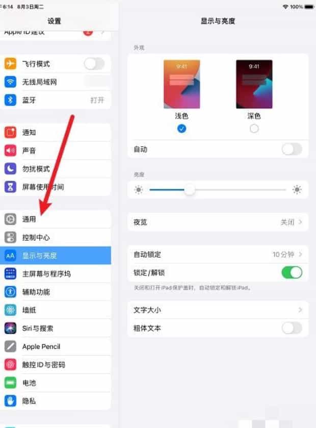 1、打开ipad平板的设置,点击【通用】进入通用设置页面。