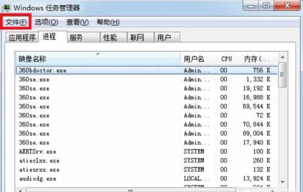2、打开任务管理器后在顶部菜单栏中点击【文件】选项。