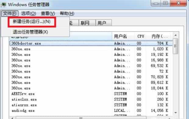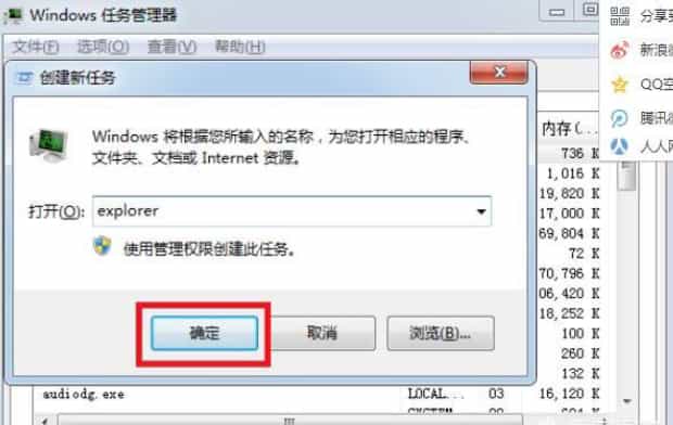 第二:点击新建任务,输入explorer上去,再点确定,桌面就出来了。