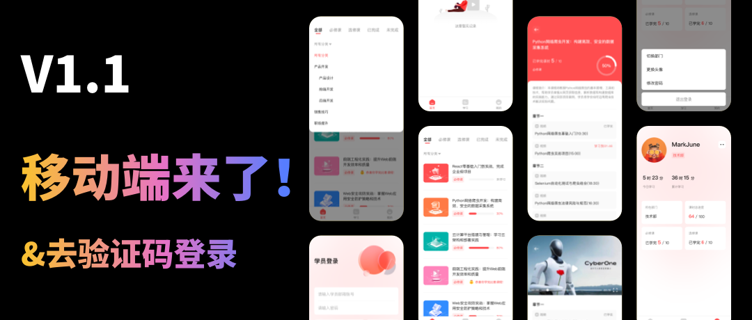 新版本我们优化了登录模块。PC学员端、后台管理端、H5端同步去掉了图形验证码。从单位时间内登录验证失败次数限制API的请求。当账密连续验证错误10次后,该账号将被锁定。前台账号锁定10分钟,后管账号锁定30分钟。