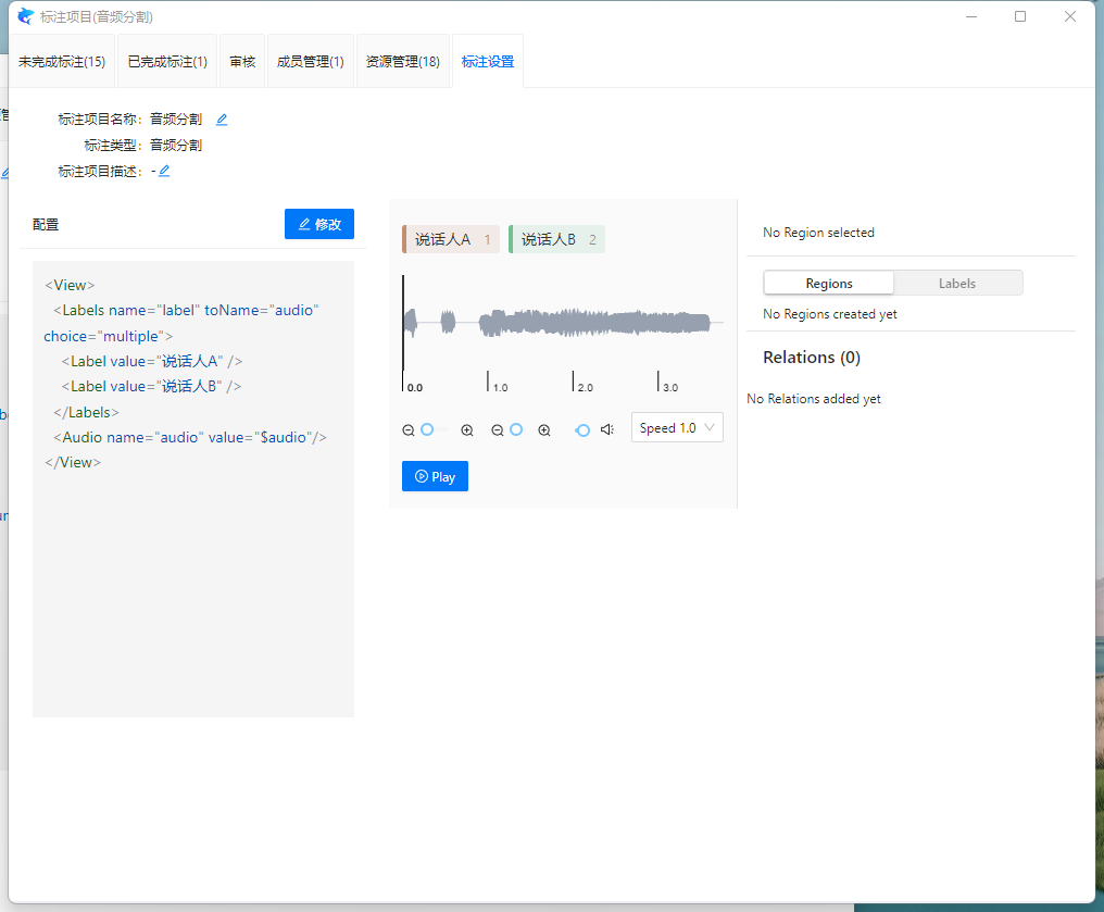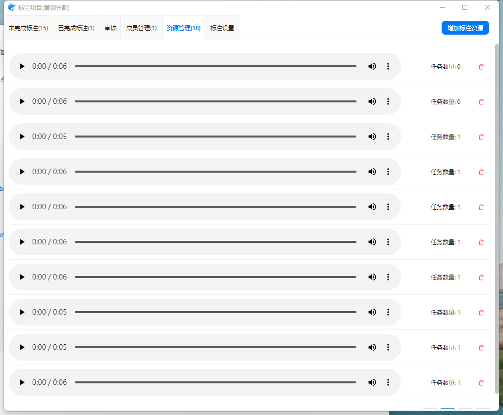 标注功能支持:音频分类,音频分割,音频翻译,音频分段翻译,图像分类,矩形对象检测,画笔分割,圆形对象检测,图像关键点,多边形分割,文本分类,文本命名实体识别,文本摘要