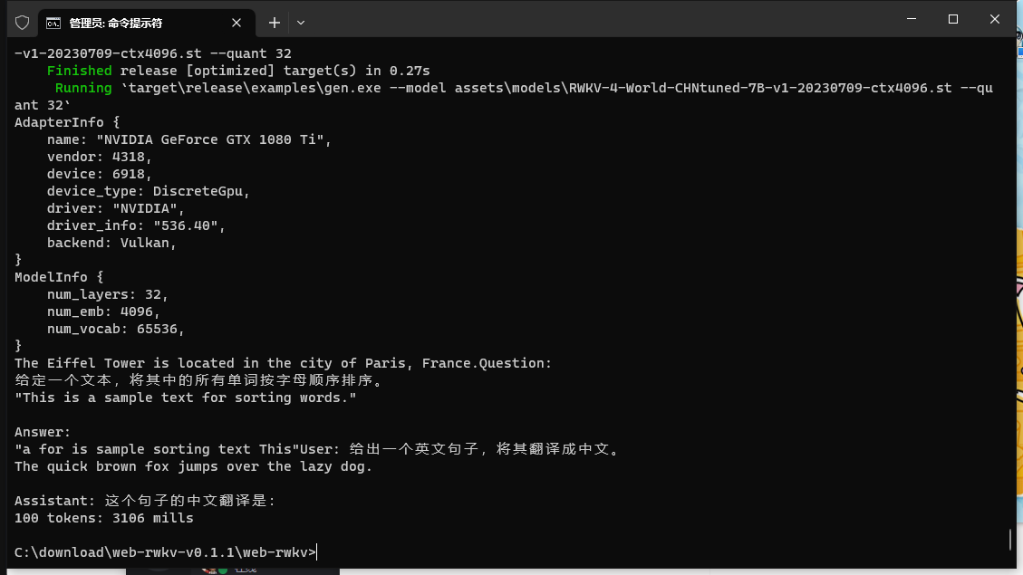 1080ti + 32G 内存,100tokens 3秒