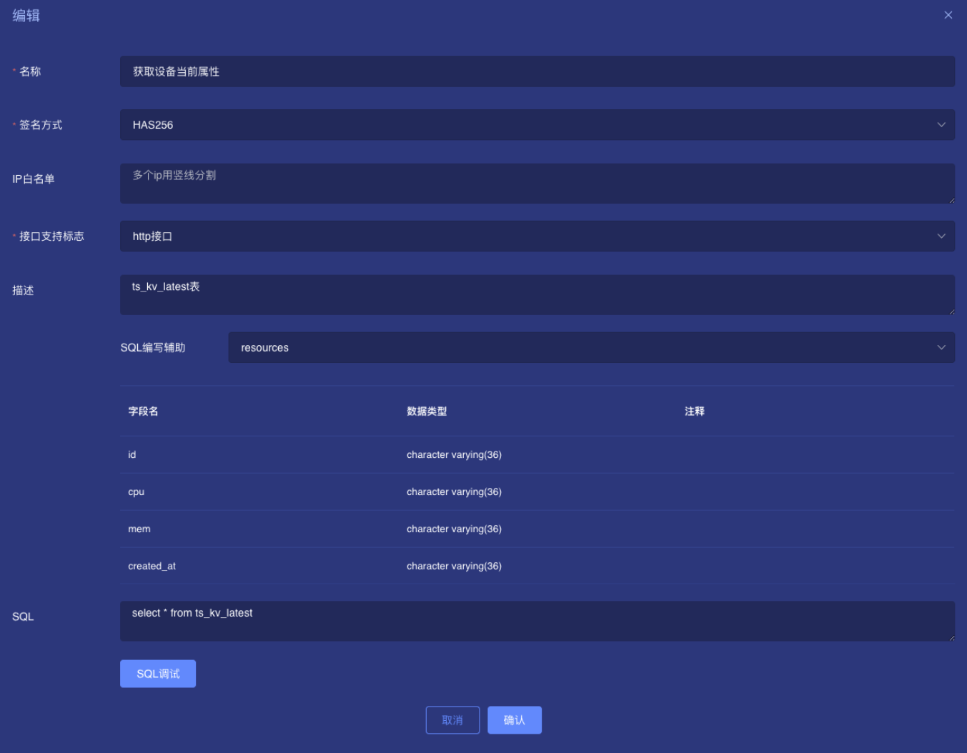 编辑SQL-to-HTTP服务(数据库接口服务)配置