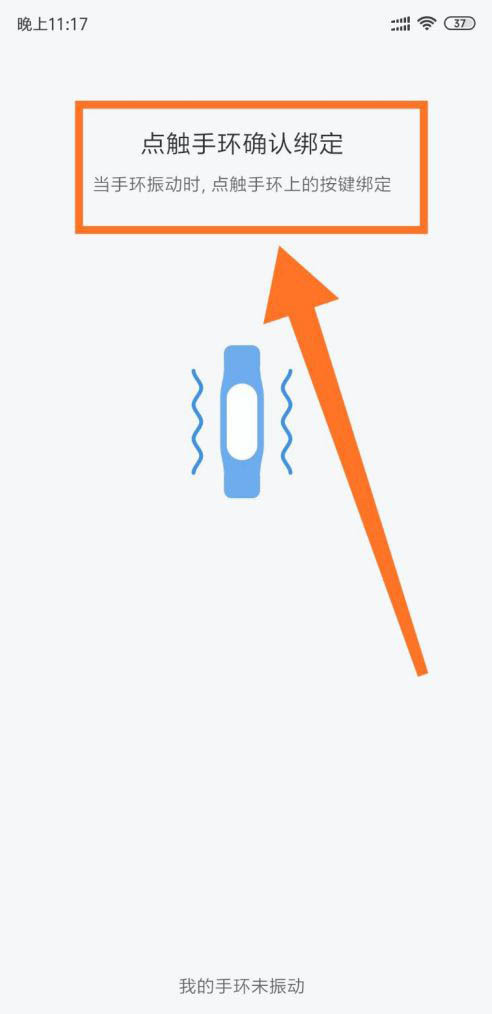 当手机搜索到手环后,手环会发出震动。当手环震动后根据指示点触手环确认绑定,手环和手机则成功绑定。