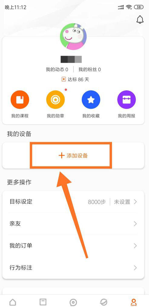 点击页面中的“我的设备”下方的“添加设备”的选项。接下来就要进行的是手环和手机的连接。