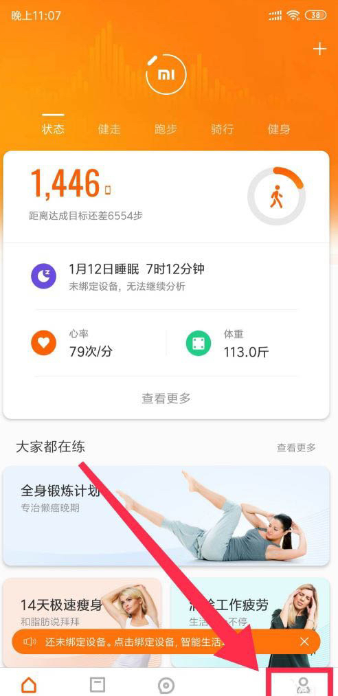 点击“小米运动”首页下方的“我的”。