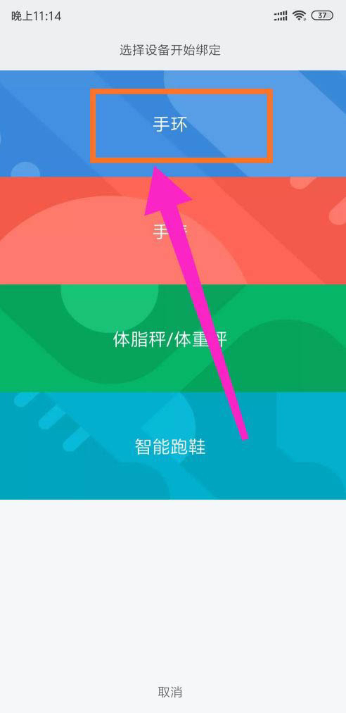 点击选择“手环”的选项。