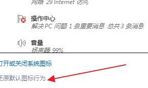 3、然后在弹出来的通知区域图标界面中,点击下方的“还原默认图标行为”,然后点击确定按钮即可。