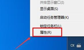 1、首先在任务栏空白处右击鼠标,选择“属性”选项;