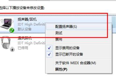 3、勾选后,就会看到禁用设备。点击启用,如若还有问题,点击选择需要配置的设备,配置扬声器。