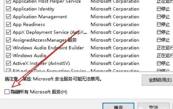 五、然后,在窗口的左下角勾选“隐藏所有Microsoft服务”。