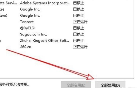 七、最后,点击“全部禁用”,即可取消chrome浏览器的自动升级,问题解决。