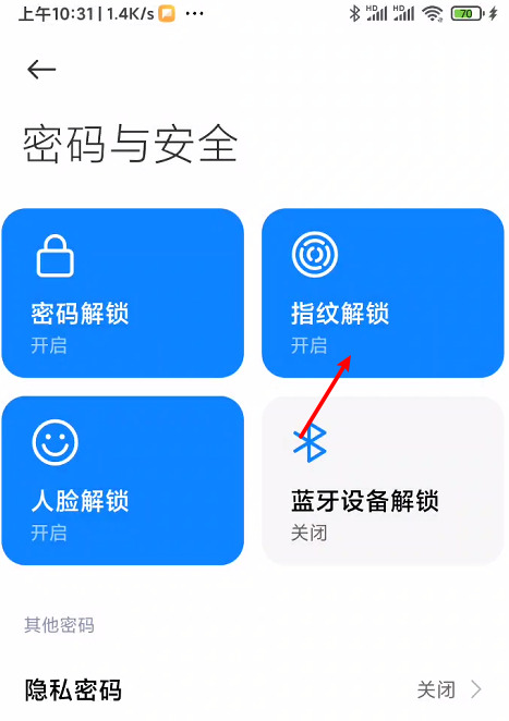 3、点击指纹解锁