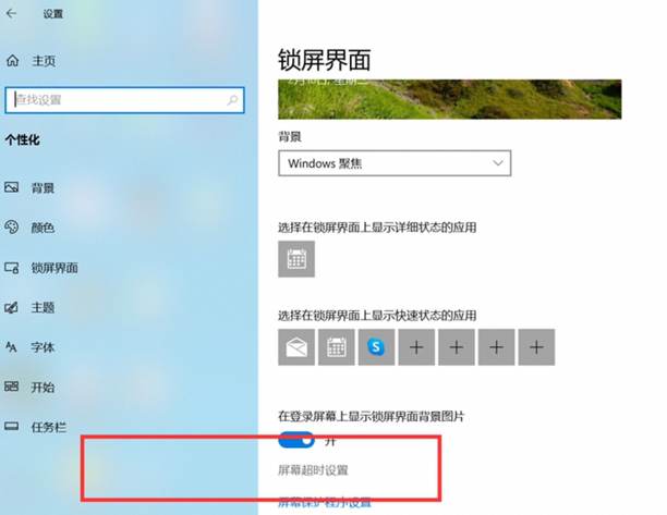 3.弹出界面,左侧点击“锁屏设置”,右侧点击屏幕超时设置。