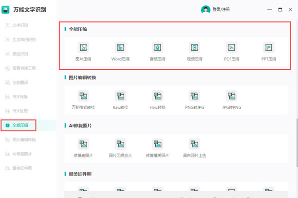 电脑储存的大文件也是运行变慢的一个原因。有些文件非常重要,不能轻易删除,但是我们可以借助【万能文字识别】压缩文件的体积。