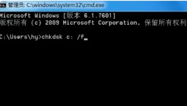 在命令提示符中输入“CHKDSKC:/F”按“回车”键执行。遇到确认提示信息输入“Y”确认。执行完毕,电脑硬盘文件系统就修复好了。重新启动电脑,就可以正常进入桌面了。
