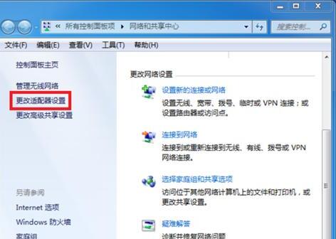 3返回到第二步的【网络和共享中心】界面,在左侧找到【更改适配器设置】并点击。
