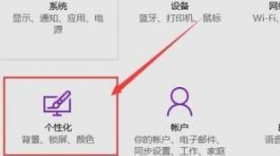 2、在 Win10 系统设置页面,,我们点击页面上的 “个性化”菜单选项设置,打开系统个性化页面。
