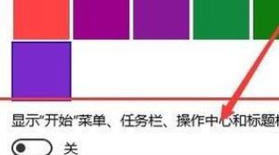 4、将页面打开到颜色设置页面的底部,然后打开默认情况下关闭的 显示“开始”菜单、任务栏、标题栏颜色开关。