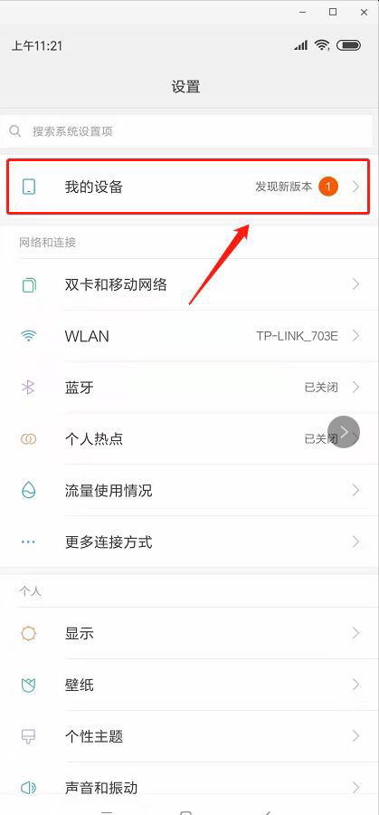 第二:点击【我的设备】,然后在我的设备页面,点击【MIUI】版本。