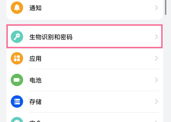 1、在手机设置菜单下点击【生物识别和密码】。
