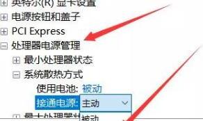6、找到处理器电源管理将接通电源选项从主动改成被动完成。