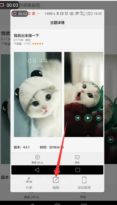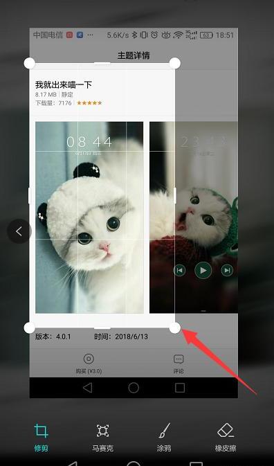 2,截屏之后,手机会停留几秒的功能选项,这时,点击截屏图片上的编辑按钮,会出现自由截图的界面。
