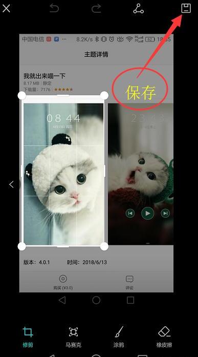 4,选中后,点击右上角的保存,即可把想要的截图区域保存到手机相册内。