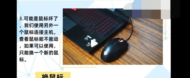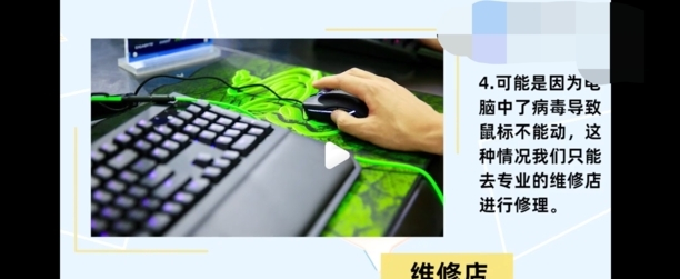 另外可能是因为电脑中了病毒导致鼠标不能动,这种情况只能去专业的维修店进行修理