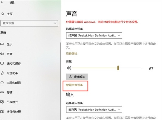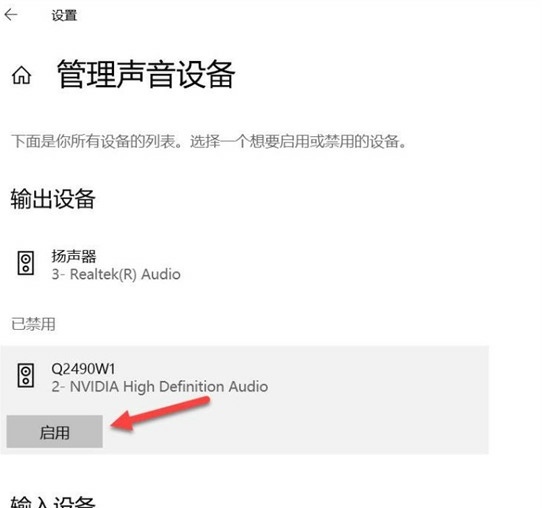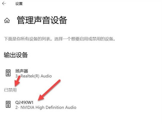 查看输出设备是否被禁用,如果被禁用,直接点击禁用的设备名称。