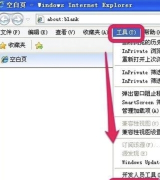 首先,我们看IE缓存清理:打开IE浏览器,工具——》Internet选项。如图。