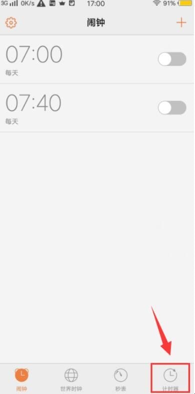 第二:进入vivo手机闹钟时钟界面后,点击进入屏幕右下角的计时器。