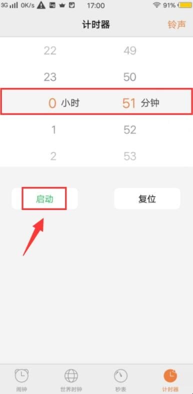 第三:进入vivo手机计时器界面后,设置好计时的时间,点击启动就可以启动计时器了。