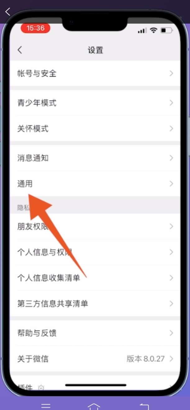 翻转至设置界面后,中间位置找到通用选项并点击。