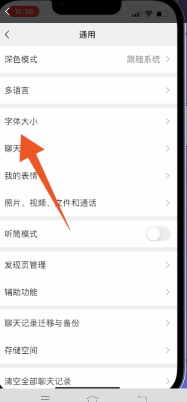 第五:在通用选项中我们再点击字体大小选项。