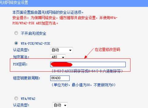 在无线安全中PSK密码一栏输入你想修改的密码。