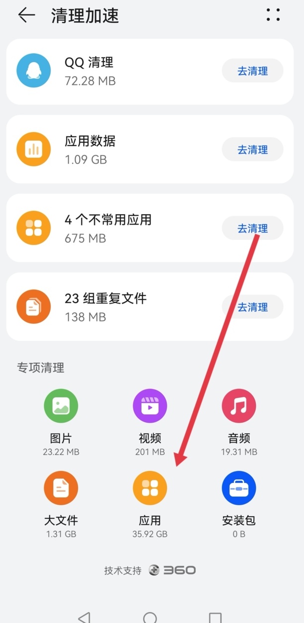 如果内存还是不足,可点专项清理中的应用