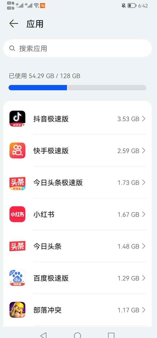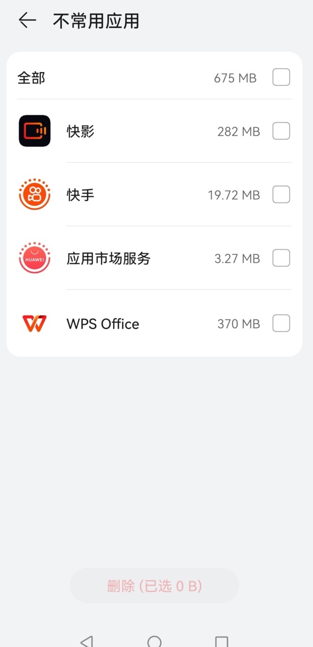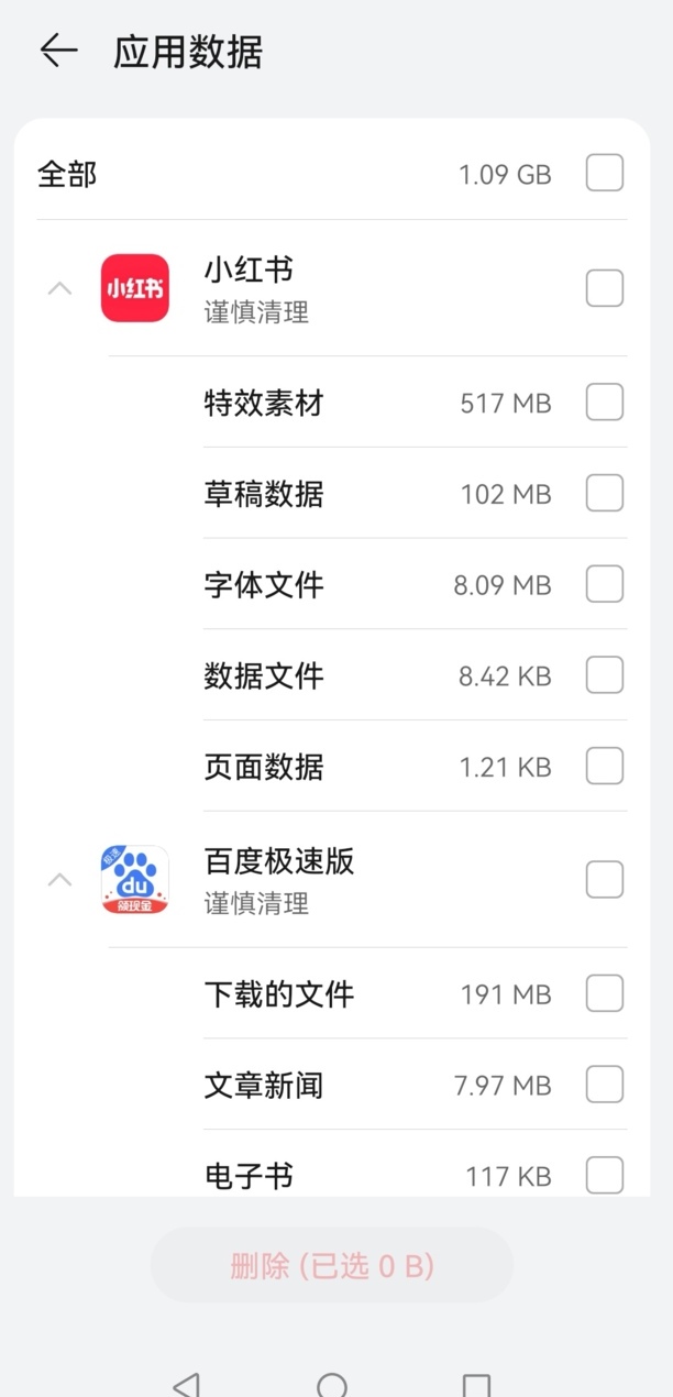 勾选应用数据进行删除,再删除不常用应用