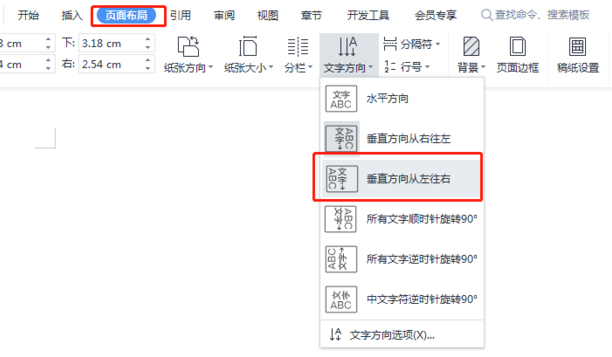 1打开word,点击顶部的页面布局图标,找到文字方向图标,选择 垂直方向从左到右
