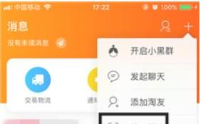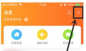 4.第二个扫描二维码的标志需要切换到“消息”这一页,然后点击右上角的“+”号标志。