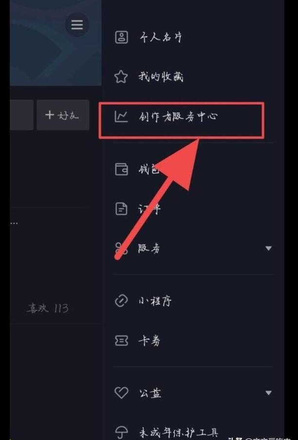 2、进入“个人界面”之后,我们应该点击上方的三个横的图标,之后,点击“创作者服务中心”这个选项。
