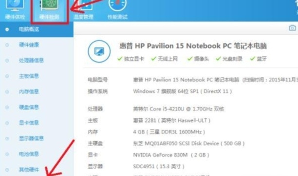 第二:当进入以后,在ludashi主页面,需要找到硬件参数这个选项,并点击进入,在左边的菜单栏中,可以找到电池信息。