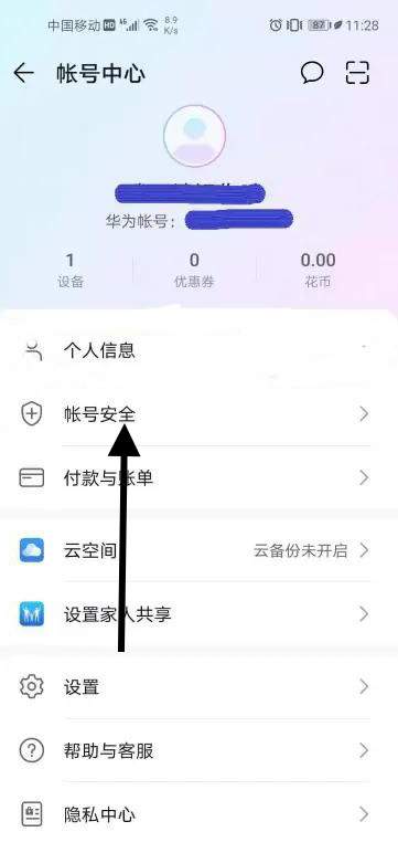 第一:登录“花粉俱乐部”,将鼠标指向自己的名字,就弹出下图,点击“华为帐号”。